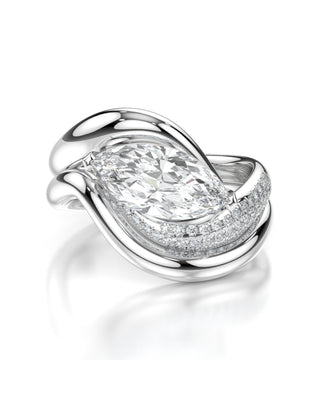 18 Karat Marquise Flow Diamond Engagement Ring Set