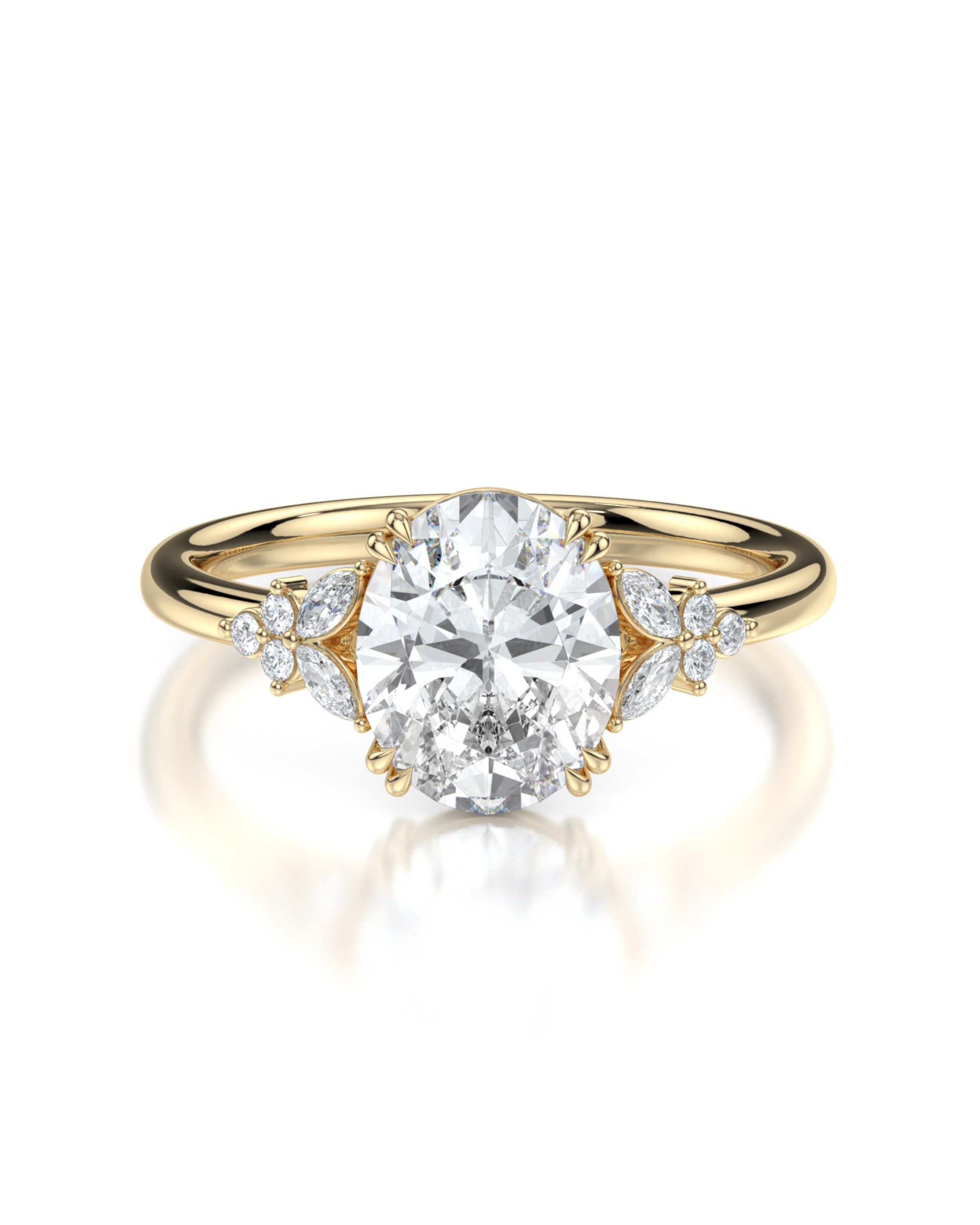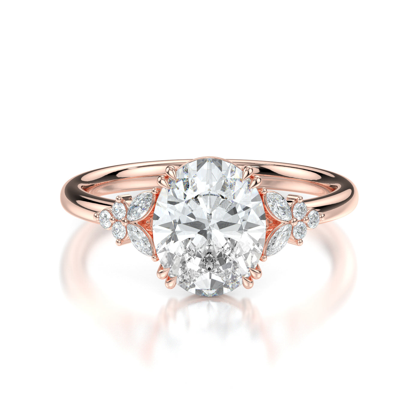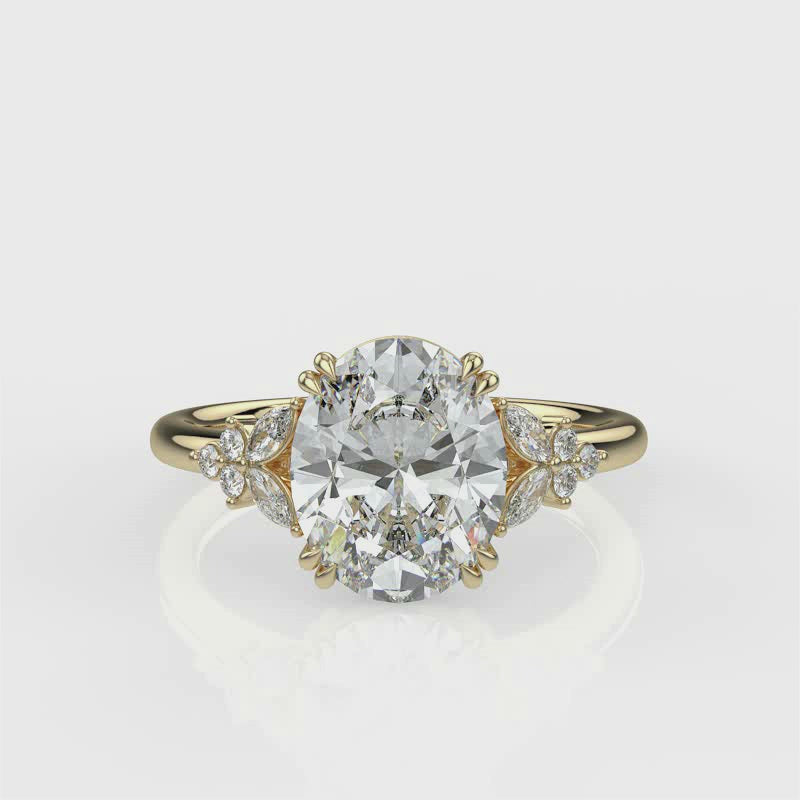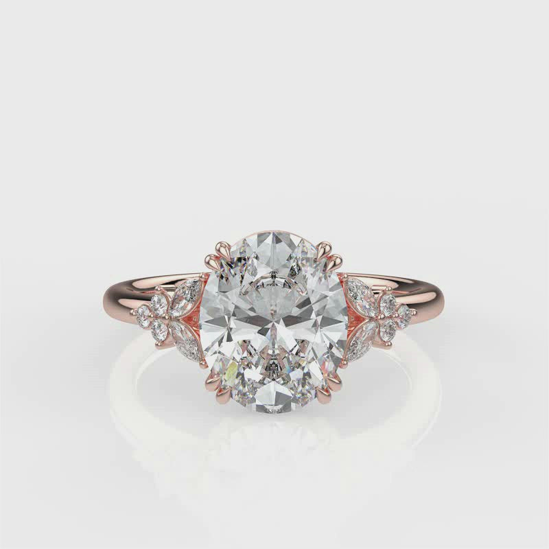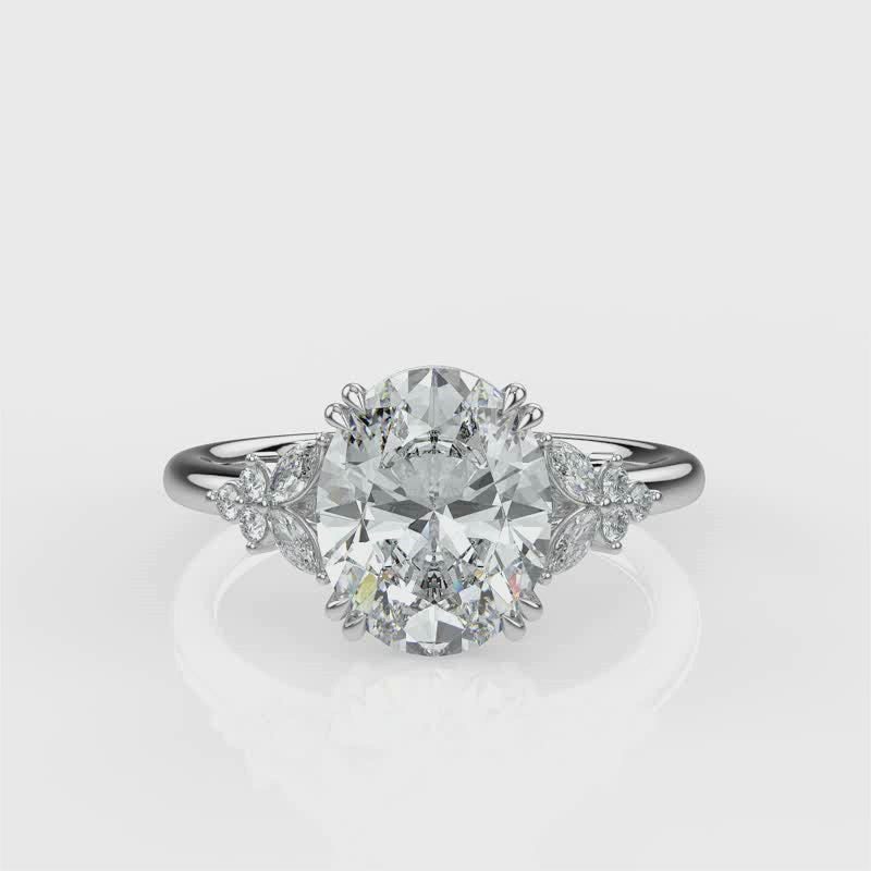 Elsa Oval Diamond Engagement Ring with Diamond Side Stones